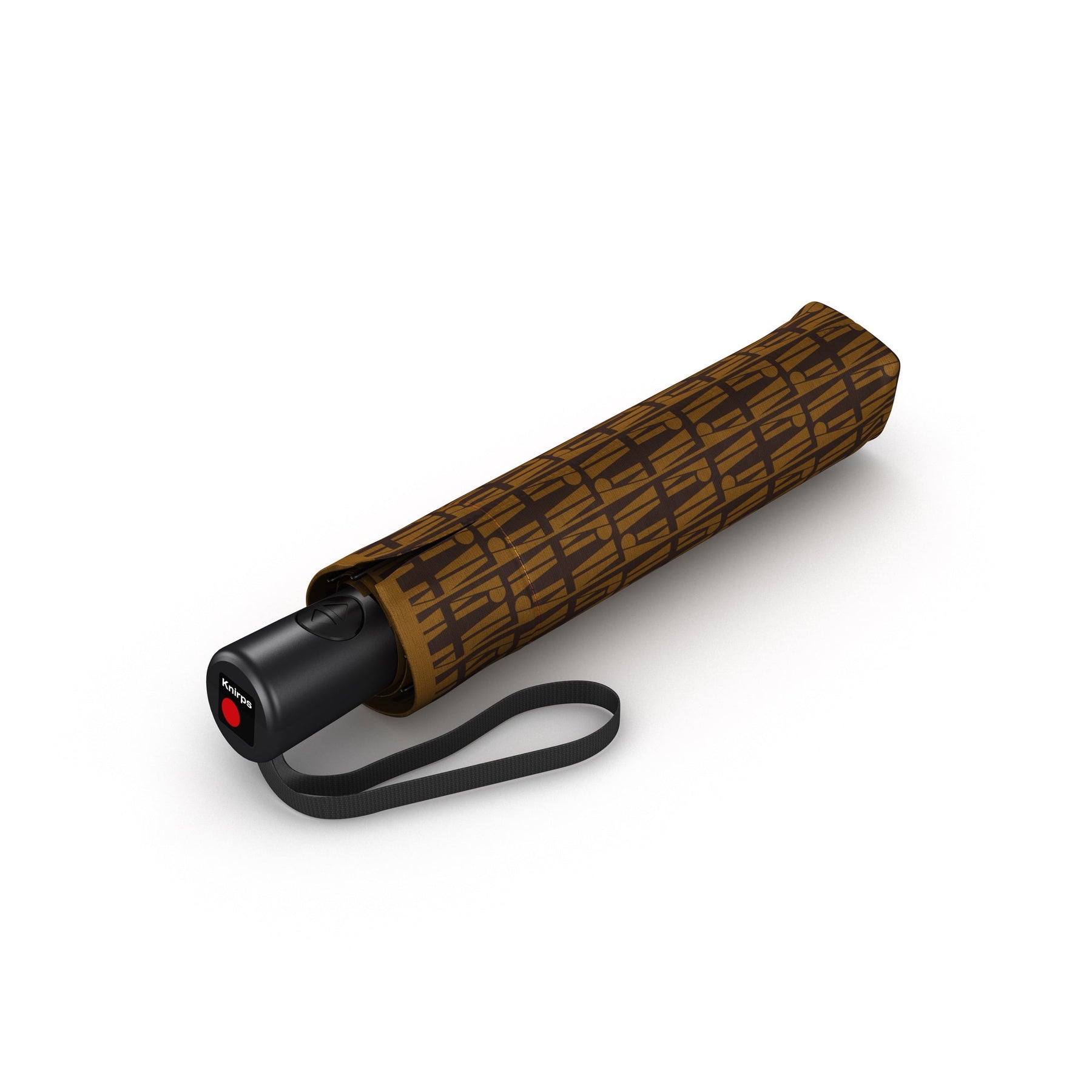The A.200 Medium Duomatic Folding Umbrella from German brand Knirps, has a pleasantly large canopy with a diameter of 97cm and an extra wide push button for easy operation of the Duomatic function. Thanks to it being designed with 8 struts, the wind load can be optimally distributed on the umbrella frame, thus withstanding wind pace in the wind tunnel of up to 120km/h. This folding umbrella has a length of 28cm making it ideal for both everyday use and travelling and the convenient strap on the handle also ensures effortless transport. It comes with a protective sleeve.